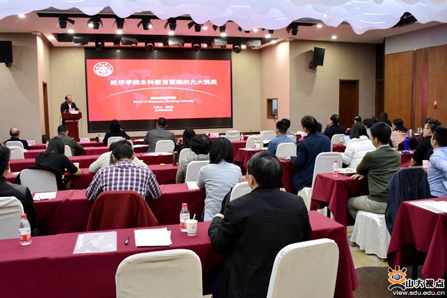 在专家报告会环节,教育部经济学类专业教指委副主任委员、北京大学经济学院院长董志勇作了题为“对北大经院教学改革的几点思考”的报告,介绍了北京大学和北大经济学院本科教育改革的实践探索,分享了北京大学本科教育和人才培养的优秀经验和成功做法。山东大学本科生院副院长姜兆亮作了题为“新形势下的专业现代化建设”的报告,介绍了学校在本科专业建设方面的目标举措,并以工科专业为例介绍了专业现代化建设的成效经验。山东大学齐鲁医学院副院长贾继辉作了题为“医学教育五维度驱动区域发展”的报告,分享了医学类专业在人才培养、科学研究、文化传承、社会服务、合作交流等五个维度推动区域发展的模式以及学生人文情怀的培养实践。国家万人计划教学名师、山东大学数学学院蒋晓芸教授作了题为“在线开放课程建设与应用——以高等数学为例”报告,分享了在线课程的建设与应用经验。国家级精品资源共享课《国际贸易学》主持人、山东省教学名师、经济学院范爱军教授作了题为“积极申报教研项目,努力打造精品课程”的报告,分享了申报教研项目、建设国家级精品课程的经验体会。山东大学青年教师讲课比赛一等奖获得者、山东大学齐鲁青年学者、经济学院张群姿教授作了题为“教学与科研的多样邂逅”的报告,分享了自己教与学相长、教与研并进的探索与经验。