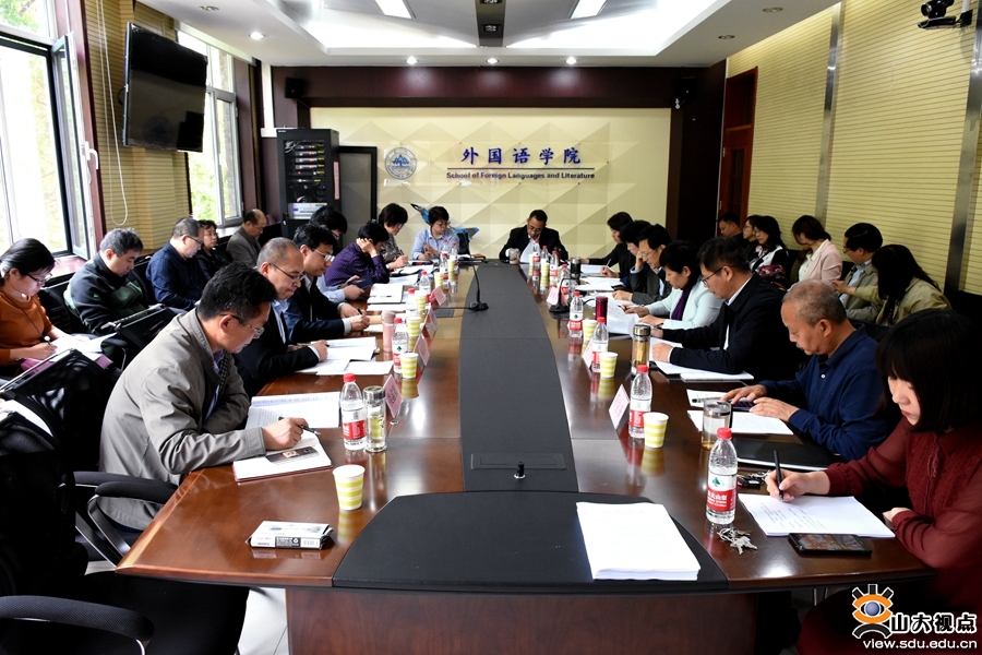 [本站讯]5月7日,外国语学院召开人文社科学术工作会议专题研讨会,学习传达学校人文社科会议精神,研讨部署学院学术工作。校长助理、人文社科研究院院长邢占军,人文社科研究院副院长丁培卫、韩吉绍出席会议,外语学院院长王俊菊主持会议。外语学院党委常务副书记薛佩军、副院长马文等党政领导班子成员,学术委员会委员,系主任及教师代表三十余人参加会议。