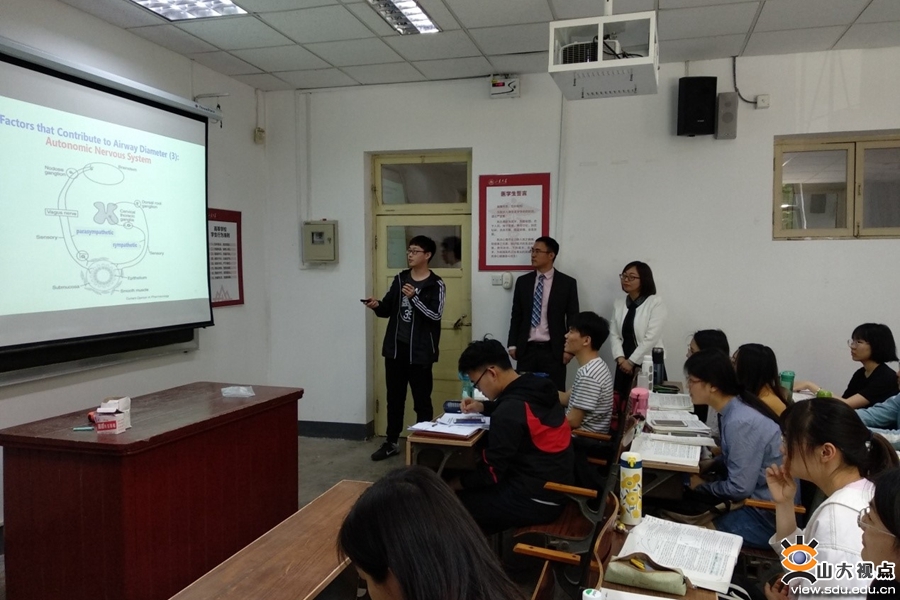 [本站讯]5月9日,基础医学院生理与病理生理学系王双连副教授依托融合课程建设的“双教师引导法”教学新模式正式落地,“体验基础结合临床,享受生理逻辑之美:翻转课堂之呼吸生理学”首次面向齐鲁医学堂的学生开课。本次课程是基础医学院继融合课程改革后,持续深入教改的又一突破。 “一个课堂,两位老师”,基础教师与临床大夫协同授课,基础理论和临床实践密切结合,最大限度优化教学效果。