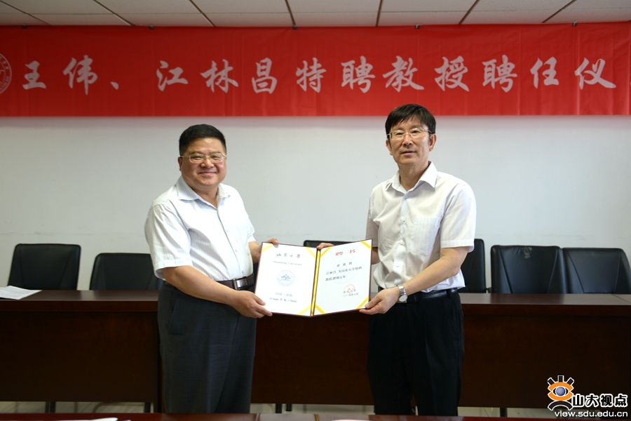 [本站讯]6月11日,王伟、江林昌两位学者的特聘教授聘任仪式在山东大学中心校区举行。山东大学副校长韩圣浩出席聘任仪式并讲话。