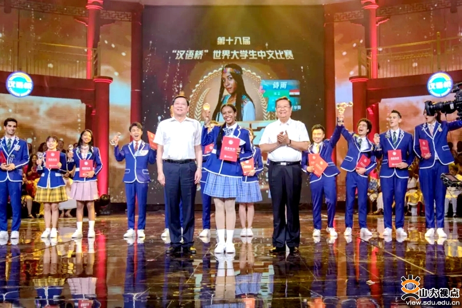 [本站讯]8月22日,第十八届“汉语桥”世界大学生中文比赛总决赛暨闭幕式在湖南长沙举行,为期一个多月的比赛落下帷幕。经过全球海外预赛、在华“过桥”比赛、复赛以及总决赛三个环节的角逐,山大留学生校友、埃及选手诗雨脱颖而出,夺得本届“汉语桥”比赛的总冠军,并被授予“汉语大使”和“汉语之星”荣誉称号。
