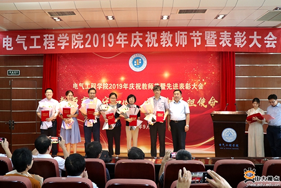 [本站讯]9月9日下午,第35个教师节来临之际,电气学院在电力楼举行庆祝2019年教师节暨先进表彰大会。本次大会的主题是“教书育人守初心、立德树人担使命”。学院党委书记刘相宜为获奖教师颁奖并致辞。学院副院长丁磊主持大会。