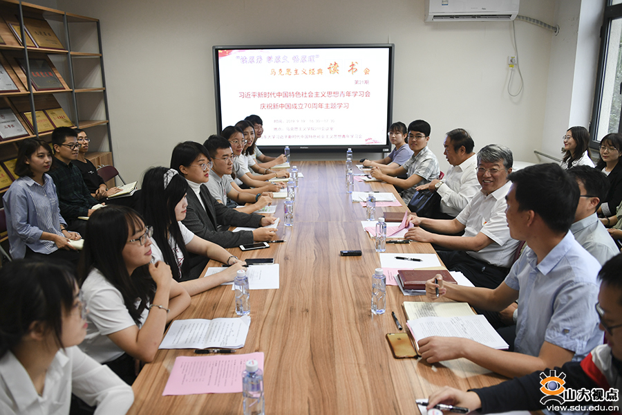 [本站讯]9月19日,山东大学习近平新时代中国特色社会主义思想青年学习会开展“读原著、学原文、悟原理”马克思主义经典读书会第21期活动暨庆祝新中国成立70周年主题学习,校党委书记郭新立出席活动并讲话。