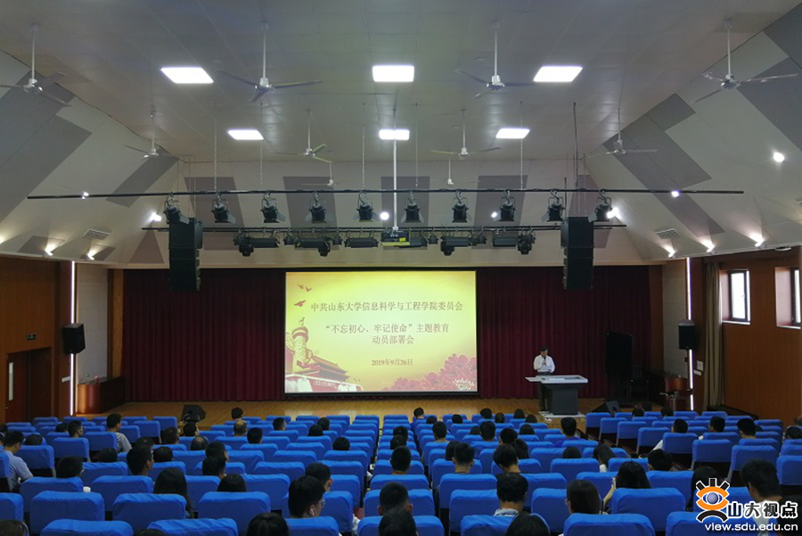 [本站讯]9月26日,中共山东大学信息科学与工程学院委员会“不忘初心、牢记使命”主题教育部署会在会文南楼举行。信息学院党委书记张东升主持本次大会。山东大学主题教育督导组组长、学生处处长宋作标、信息学院全体党员参会。