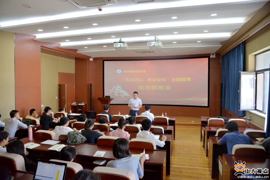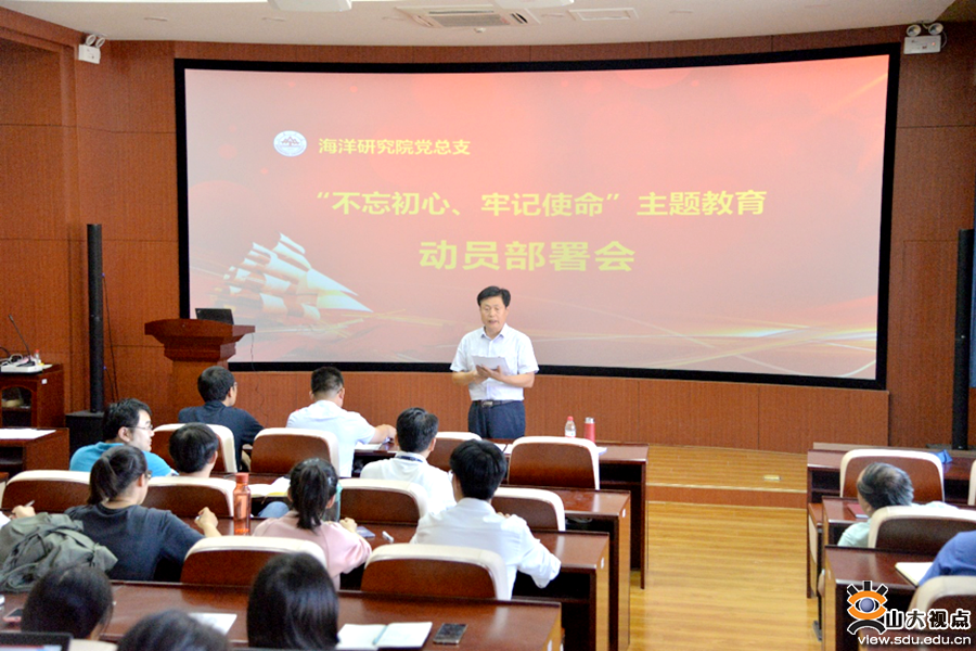 [本站讯]9月26日,海洋研究院召开“不忘初心、牢记使命”主题教育部署会,深入贯彻落实习近平总书记关于“不忘初心、牢记使命”主题教育的重要讲话和重要指示批示精神,按照学校要求对研究院开展主题教育进行部署。海洋研究院党总支书记张振山主持部署会并作动员讲话。山东大学“不忘初心、牢记使命”主题教育第十五指导组成员盛瑞金、苏海楠同志参加会议并讲话。