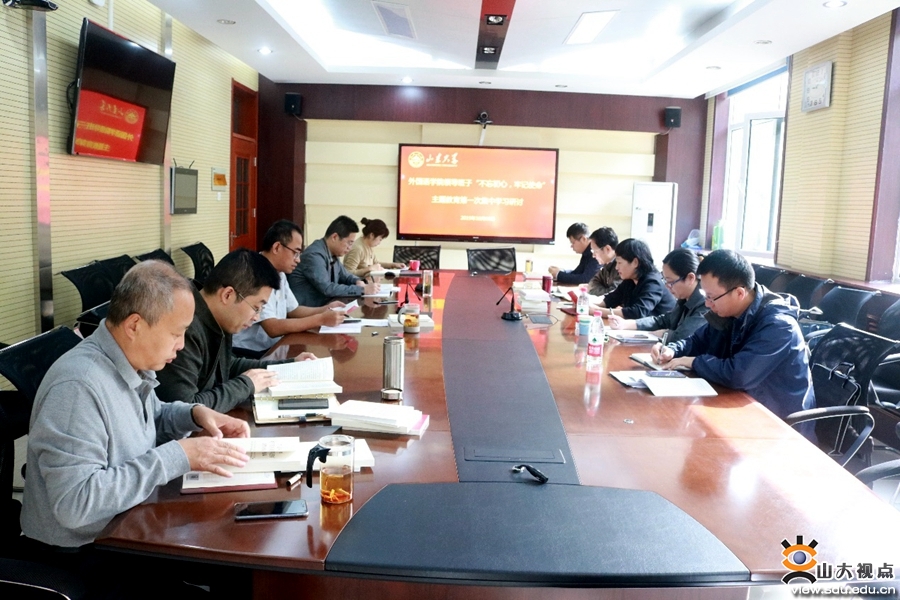 [本站讯]10月8日,外国语学院党委理论学习中心组学习暨领导班子“不忘初心、牢记使命”主题教育第一次集中学习研讨会举行。学校第一指导组副组长刘琰、指导组成员范金林到会指导,学院班子成员参会。学院党委书记、院长王俊菊主持会议。