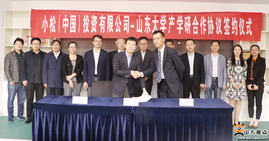 山东大学科研院、国际事务部、学生工作部、材料学院、等单位有关负责人;株式会社小松制作所生产技术开发中心,小松(中国)投资有限公司生产调达本部、小松山推工程机械有限公司TMQ推进室、小松(山东)工程机械有限公司材料试验中心有关负责人参加签约仪式。