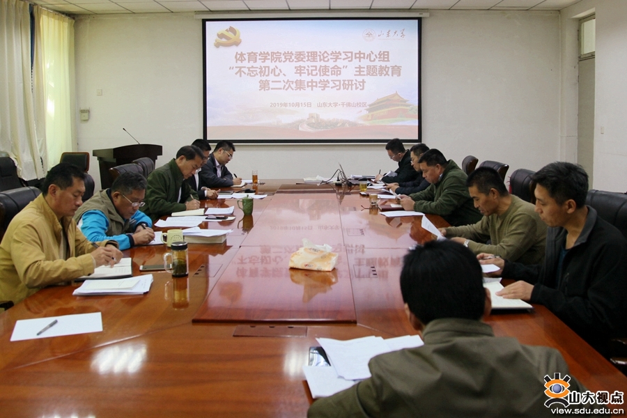 [本站讯]10月15日,体育学院党委理论学习中心组在千佛山校区开展“不忘初心、牢记使命”主题教育第二次集中学习研讨。本次学习研讨的主题包括“提升服务国家战略能力”与“深入开展群众体育、凝练山东体育特色”两个方面。会议由体育学院党委常务副书记郭学庆主持。
