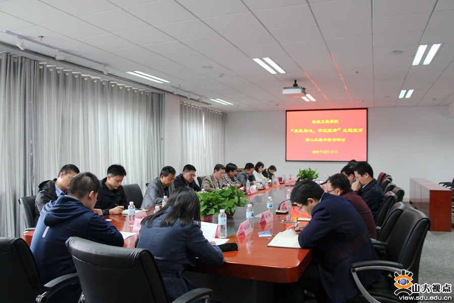 [本站讯]10月17日,机械学院“不忘初心、牢记使命”主题教育第二次集中学习研讨在千佛山校区创新大厦举行,会议以“强院兴校勇担使命,提升学术竞争能力”为主题展开学习研讨交流,学院院长黄传真主持会议。
