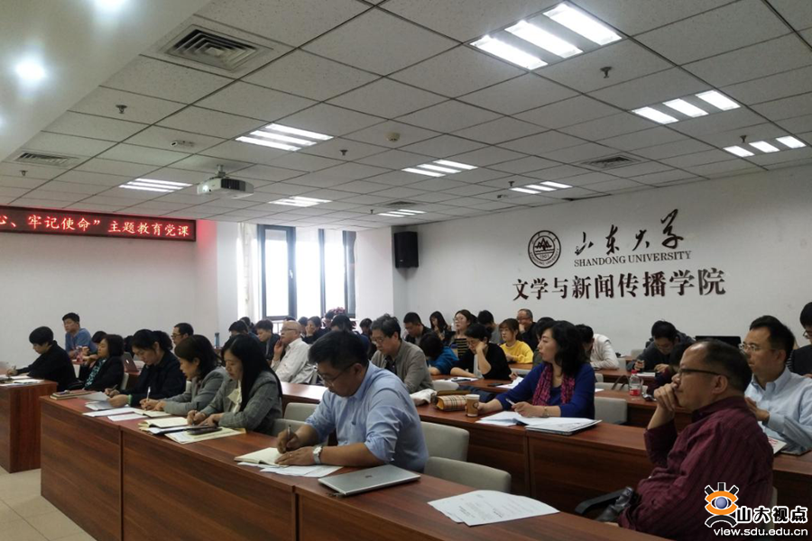 [本站讯]10月24下午,根据学校“不忘初心、牢记使命”主题教育工作安排,新闻传播学院在知新楼开展“不忘初心、牢记使命”主题教育党课。学院党委书记王德胜作了题为“遵循立德树人根本任务,努力提升教书育人能力”的党课演讲。学校主题教育第四督导组成员、教师工作部副部长张权,新闻传播学院领导班子成员、全院教职工和学生党员代表参加了本次党课。