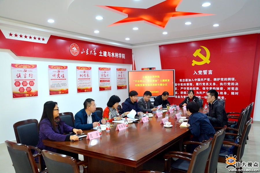 [本站讯]10月28日下午,土建学院“不忘初心、牢记使命”主题教育对照党章党规找差距专题会议在千佛山校区举行。党委书记胡岩主持会议。