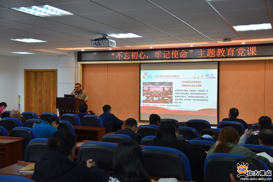[本站讯]10月29日下午,能动学院在千佛山校区东配楼开展“不忘初心、牢记使命”主题教育专题党课。学院党委书记徐波以“学科争创守初心,强院兴校担使命”为题作专题报告。学校主题教育第三指导组江红同志列席旁听。院党委副书记滕玉军主持报告会。