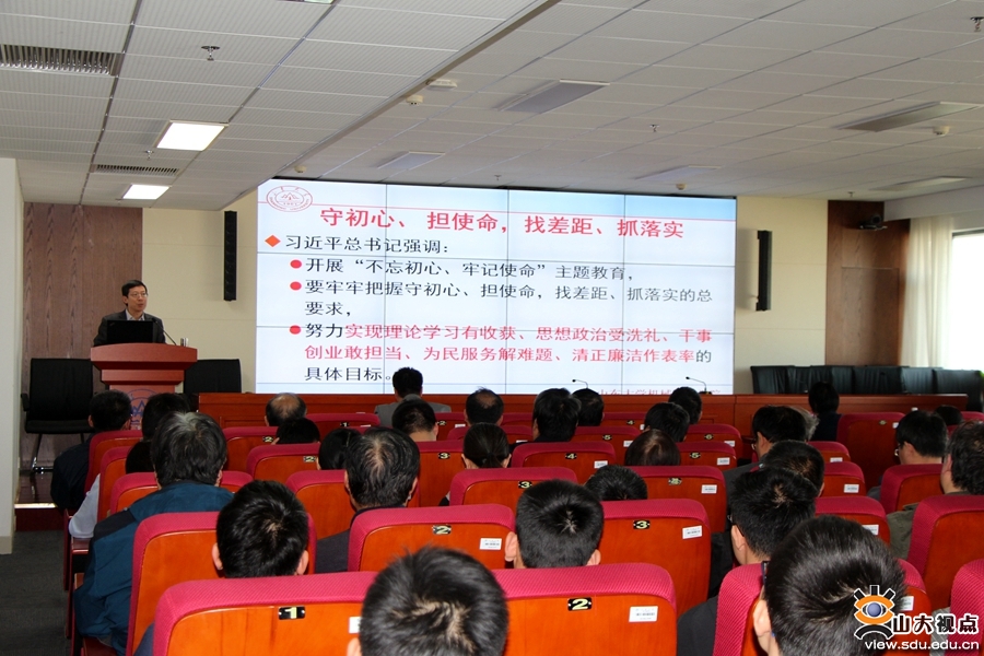[本站讯]10月30日,根据学院“不忘初心、牢记使命”主题教育工作安排,机械学院院长黄传真同志以“守初心、担使命,推进机械工程学院高质量发展”为题为学院党员师生讲专题党课。山东大学“不忘初心、牢记使命”主题教育第三指导组副组长江红参加党课报告会,机械工程学院副院长姚鹏主持会议。