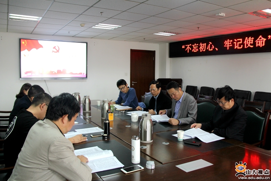 [本站讯]10月28日,儒学高等研究院领导班子“不忘初心、牢记使命”主题教育调查研究成果汇报交流会在中心校区知新楼举行。研究院党委书记李平生主持会议,执行院长王学典和班子全体成员参加会议,学校主题教育第四指导组成员到会指导。