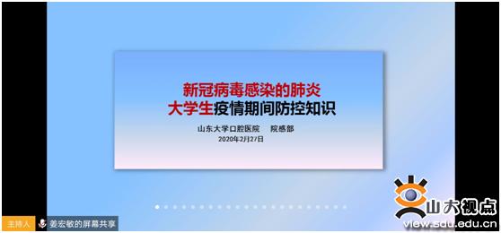 [本站讯]2月29日,口腔医学院团委线上召开了“新冠病毒大学生疫情期间防控知识”专题培训。此次培训特邀口腔医院感染管理部主任姜宏敏老师进行指导。