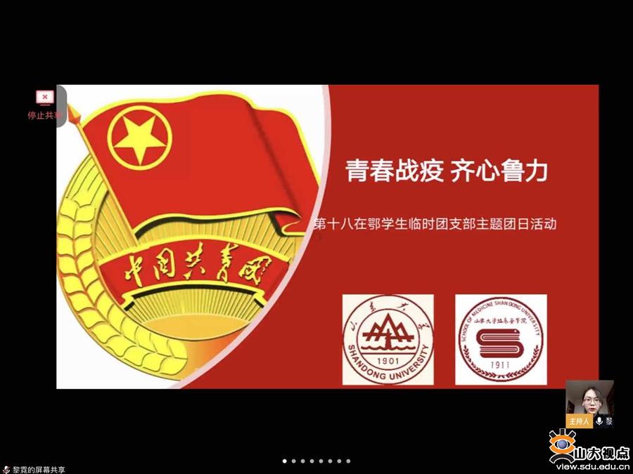 [本站讯]3月24日,山东大学在鄂学生第十八临时团支部“青春战疫,齐心鲁力”线上主题团日活动在腾讯会议平台举行。临床医学院党委副书记孙钰、学生心理健康教育与咨询中心副主任许晓梅、第十八临时团支部指导员薛冰参与活动并与青年学子展开交流。