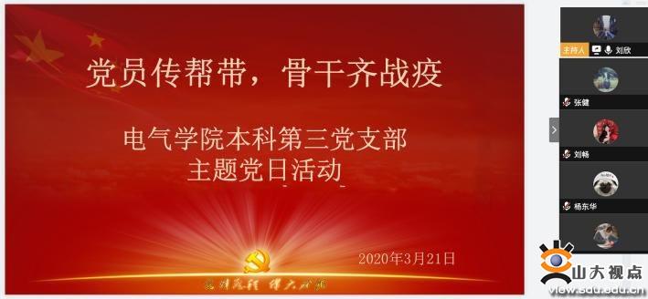 [本站讯]自新冠病毒肺炎疫情发生以来,电气工程学院本科第一、第二、第三党支部高度重视疫情防控工作,认真贯彻落实党中央、教育部、学校等有关重大决策部署,富有创造性的开展多样化的“云活动”,充分发挥学生党支部战斗堡垒作用和学生党员先锋模范作用,紧抓党员思想建设,强责任、重引领,通过学、行、文、笔、动、教等形式,六措并举,取得了良好成效。