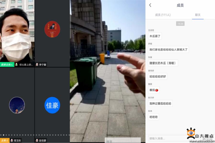讲座伊始,2019级本科生辅导员赵显锋带领大家“云游”中心校区,向同学们展示了学校校门、体育馆、教学楼、图书馆、公寓楼、食堂等不同场所的防控措施以及学生返校准备工作、返校后不同场景下的防控要求,希望大家充分了解和做好安全返校的准备,调整好居家学习生活的心态,同时对于同学们在聊天区提出的一系列返校后的学习生活问题,给予了解答,为大家提供了一批“干货”。随后,各班同学以视频形式分享了居家的学习生活情况。从甘肃到重庆、由台湾到浙江再到安徽,来自五湖四海的同学们在视频分享过程中带领大家体验了不同地域的自然风貌和风土人情。同学们也积极分享了自己对居家学习的感受,有的同学认为虽然居家学习需要更多的自律性,但我们也因此获得了更多与家人相处的时间;有同学表示居家线上学习,因为授课形式的特殊性,我们应该通过设定学习计划、时间表等具有仪式感的活动增强学习自主性,同时在学习之余多眺望远方、看看绿色植物、放松眼睛,平衡好学习与生活的关系。有的同学谈到,虽与同学们暂时分离、相隔千里,无法相见与线下,但我们也应该利用网络平台与同学朋友们“云见面”、“云相聚”,以达到友谊有提升、学习有动力的小目标。