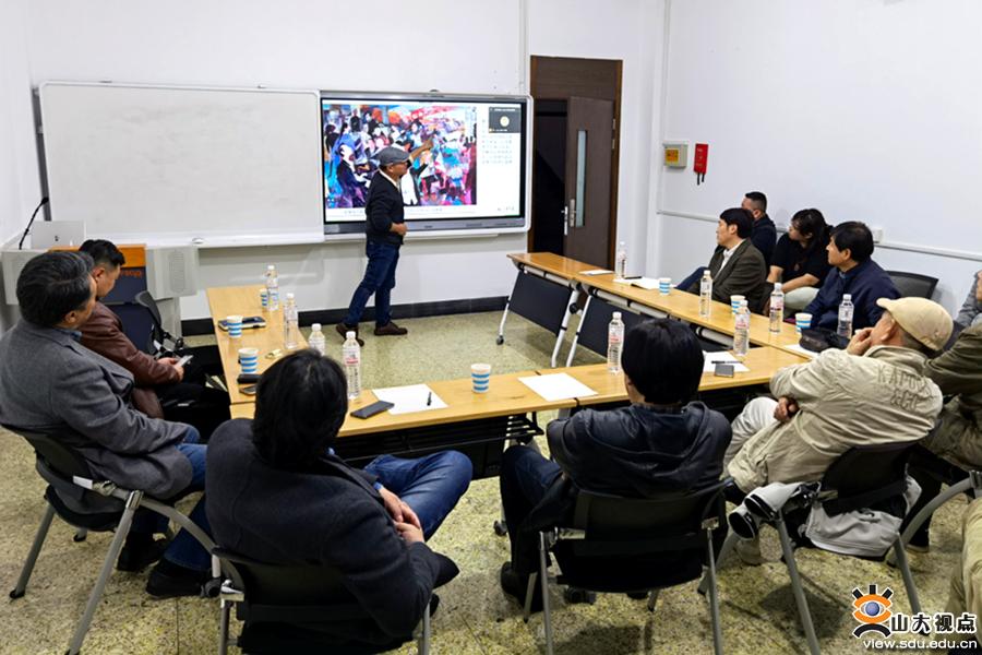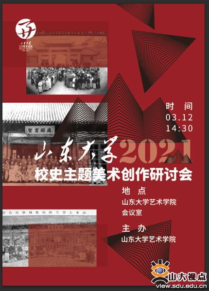 [本站讯]3月12日下午,艺术学院、艺术学院(威海)召开“山东大学校史主题美术创作研讨会”,会议通过线上线下结合的方式举行。中国美术家协会理事、中国油画学会理事、全国美展评委、第一届国家重大题材美术创作艺术委员会委员、山东艺术学院院长王力克,中国油画学会理事、国务院特殊津贴专家、第一届国家重大题材美术创作艺术委员会委员、山东省油画学会主席陈国力,中国美术家协会综合材料绘画委员会委员、全国美展评委、山东艺术学院岳海波教授,山东画院高级画师、济南市美术家协会副主席李兆虬出席会议。山东大学档案馆副馆长耿德良对校史画作品进行了创作理念与校史知识方面的指导和研讨。