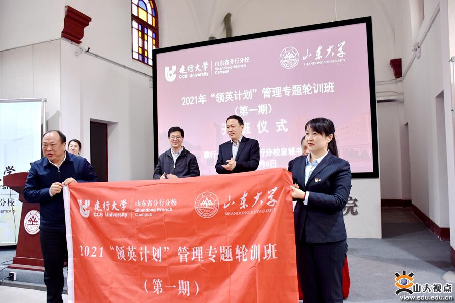 [本站讯]4月6日,山东大学经济学院举办了“山东大学-建设银行山东省分行2021‘领英计划’管理专题轮训班”开班典礼。中国建设银行山东省分行党委书记、行长杨军,山东大学党委副书记陈宏伟,中国建设银行山东省分行人力资源部副总经理、副部长王敏,山东大学经济学院院长曹廷求出席典礼。