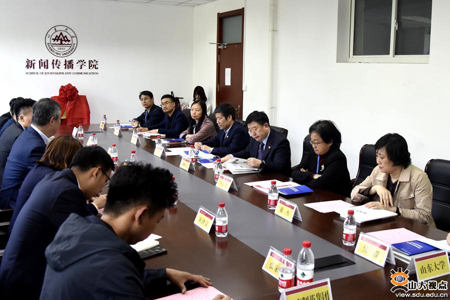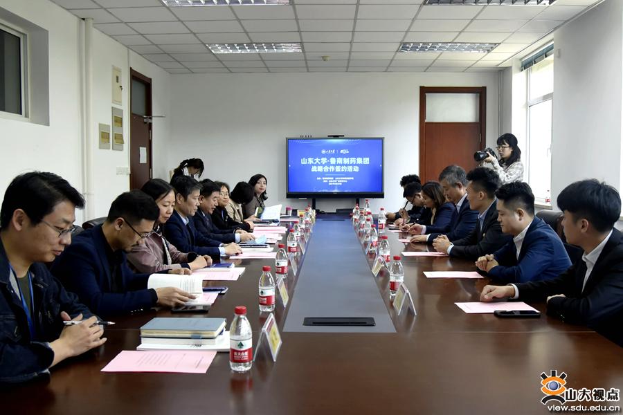 [本站讯]4月29日,由新闻传播学院与鲁南制药集团主办,山东大学广告研究中心承办的山东大学与鲁南制药集团战略合作签约活动举行。山东大学党委常委、宣传部部长桑晓旻,新闻传播学院党委书记王德胜、党委副书记王丽君,鲁南制药集团副总经理李宝杰等出席活动。