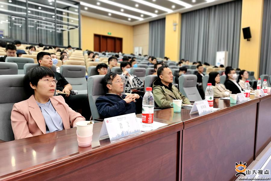 霍文涛从“这是个怎样的企业”,“科技创新打造智慧建造”,“人才培养和职业发展”三个方面展开讲解。他首先介绍了中建八局一公司光辉的发展历程和近年来服务国家重大基础设施建设、驰援武汉建设雷神山医院的经历。随后,他对企业做了整体介绍,公司近年来各项指标增幅都超过三成,公司也在不断改进运作方式,拓宽海内外业务,发展状态良好,前景广阔。霍文涛讲解了在工程项目中应用科学技术的相关情况。他为同学们介绍了公司的关键技术创新点,并重点展示了BIM技术在实际工程中的作用。他表示,现阶段人工智能、物联网、5G技术已经应用到工地施工的方方面面,各位同学是新技术的创新者,希望大家未来能够参与到智能系统的建设当中。霍文涛讲到,中建八局一公司有着完善的“沐火计划”841人才培养体系和“双通道”职业发展途径,这些制度都为同学们提供了极广的发展前景。目前共计110位山东大学毕业生在中建八局一公司工作,也欢迎广大同学加入公司。