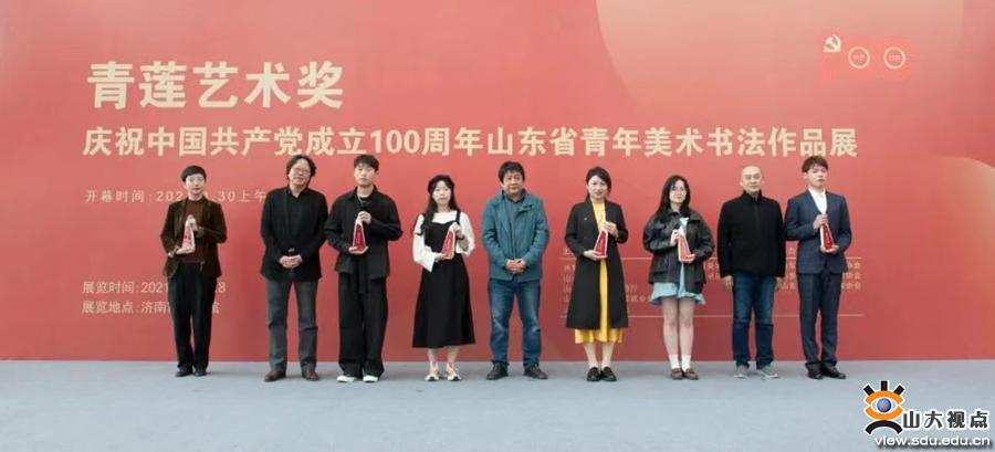 [本站讯]近日,由共青团山东省委、山东省教育厅、山东省文化和旅游厅、山东省文学艺术界联合会、山东省青年联合会等共同举办的“青莲艺术奖·庆祝中国共产党成立100周年山东省青年美术书法作品展”在济南市美术馆隆重开幕。山东大学艺术学院2018级油画专业本科生翟研荣获“青莲艺术奖”并领取了奖杯。