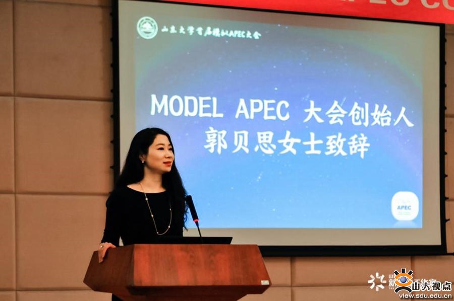 郭贝思在大会开幕式的致辞中表示,模拟APEC活动作为一项益于青少年发展的公共外交活动,为国际青年们打造了一个交流共享的平台,能够引领青年成为国际化人才。她对外国语学院培养国际化人才的策略表示赞赏,对模拟APEC活动与山东大学的合作表示期待,并预祝大会取得圆满成功。