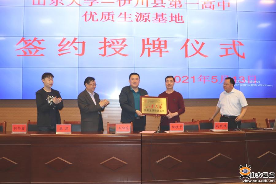 拓展组先后走访了河南省伊川县第一高级中学、郑州市第九中学两所重点学校,并举行“山东大学优秀生源输送基地”授牌仪式、山东大学招生宣讲和名师报告会。