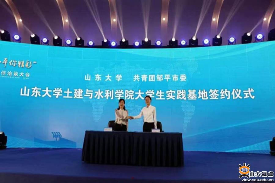 为全面了解邹平市人才引进计划,与邹平市建立长期的社会实践合作关系,学院代表应于淼邀请参加了“邹爱人才·平你精彩”高层次人才合作洽谈大会。会议期间,土建学院与共青团邹平市委签定基地共建协议。双方就基地建设事宜进行了座谈交流,座谈会上,辛帅和于淼共同为新基地的成立揭幕。