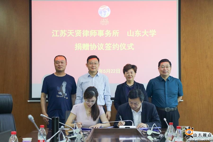[本站讯]5月22日,山东大学法学院与江苏天贤律师事务所捐赠协议签约仪式在青岛举行。江苏天贤律师事务所主任任洁,法学院党委书记于向明、院长周长军、党委副书记董雪梅、教师代表胡常龙教授参加签约仪式。