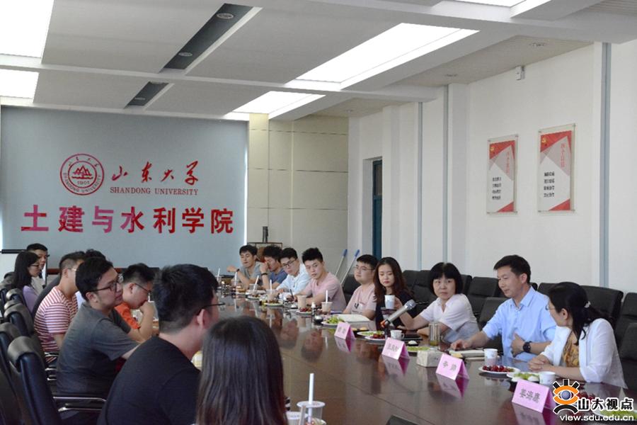 [本站讯]6月4日,土建与水利学院在千佛山校区举办2020-2021学年“导学思政下午茶”之“青春拂晓,年少可期”活动,本次活动由研究生院、党委研究生工作部主办,土建与水利学院承办,旨在深入落实习近平总书记对研究生教育工作作出的重要指示精神,着力加强和改进研究生思想政治教育工作。土建学院院长张庆松、党委书记胡岩、党委副书记辛帅出席活动,部分辅导员以及20余名毕业生参加活动。