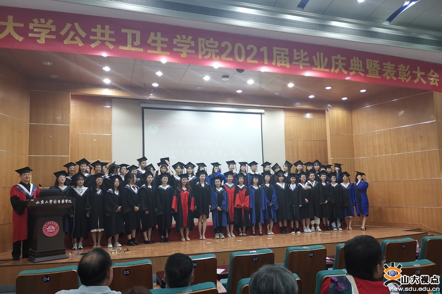 本次毕业庆典暨表彰大会是毕业生教育的重要内容,也是学院深入推进“三全育人”工作的重要载体,学院以庄重典雅、温情有爱的毕业仪式,努力为毕业生上好“最后一课”。山东省疾病预防控制中心、济南市疾病预防控制中心、山东省职业病防治研究院、济南市中心医院、山东大学临床医学院的教师代表,公卫学院学术委员会专家、学系主任、支部书记、优秀教师代表、全体辅导员和2021届本科、硕士、博士毕业生共200余人参加此次活动。