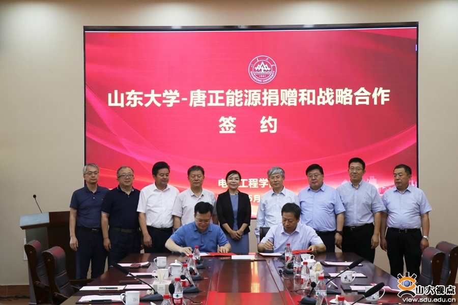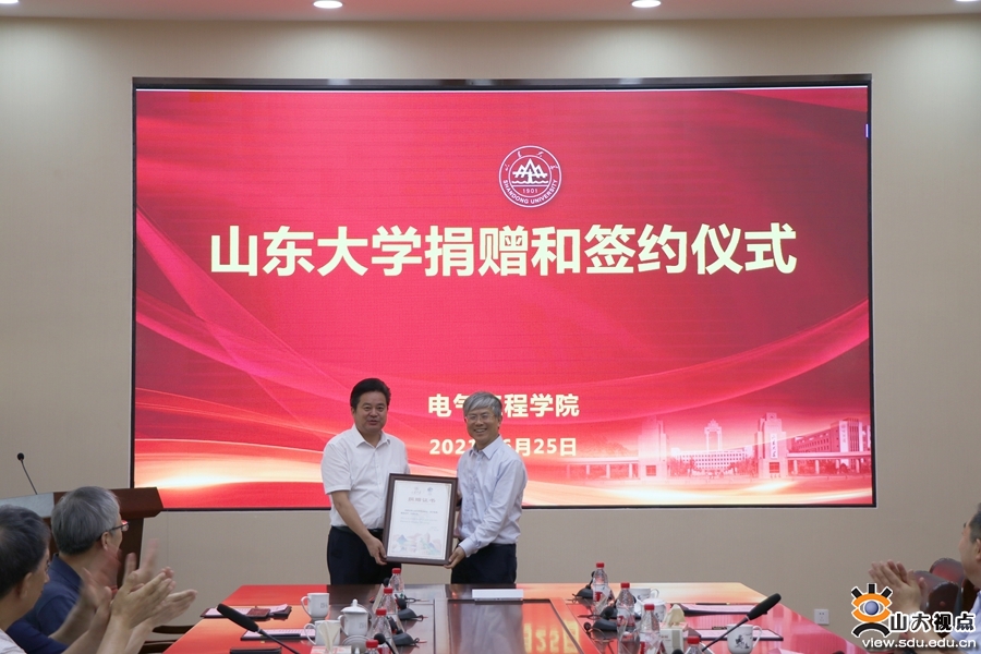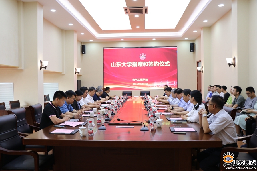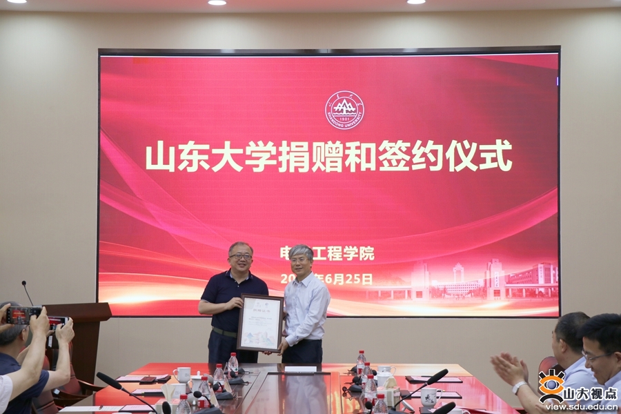 [本站讯]6月25日下午,电气工程学院集中捐赠和校企战略合作签约仪式在千佛山校区举行。山东大学副校长李术才、国网山东电力科学研究院副院长刘洪正、积成电子股份有限公司董事长王良、唐正能源控股股份有限公司董事长李倩等出席捐赠活动并致辞。