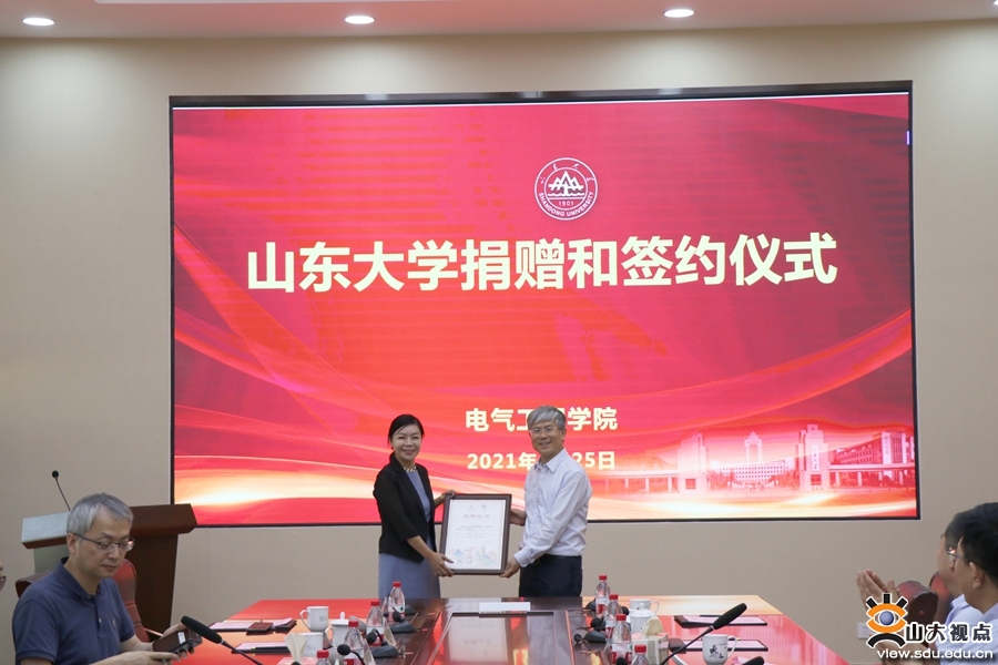 捐赠仪式上,刘洪正个人捐赠100万元注入薛禹胜教育基金,用于学生奖助学;李倩代表唐正能源控股股份有限公司捐赠210万元,设立唐正能源教育基金,用于奖励资助电气学院青年学者、未来计划人才培养和能源技术的研发突破;王良代表积成电子股份有限公司捐赠自主研发、价值360万元的世界顶级的全电磁暂态仿真设备一套,共建“山东大学-积成电子未来形态电网仿真分析中心”。仪式由电气工程学院党委书记刘相宜主持。