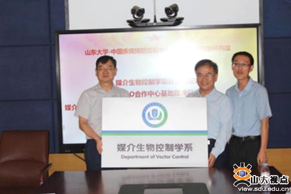 仪式上,李士雪和阚飙签署共建协议,李士雪宣读关于成立媒介生物控制学系的文件,并为刘起勇颁发聘书、授牌;刘起勇为李士雪等参加媒介生物控制学名词编写和审定的专家颁发聘书,宣布在山东大学公共卫生学院设立“世界卫生组织媒介生物监测与管理合作中心研究和培训基地”并授牌。