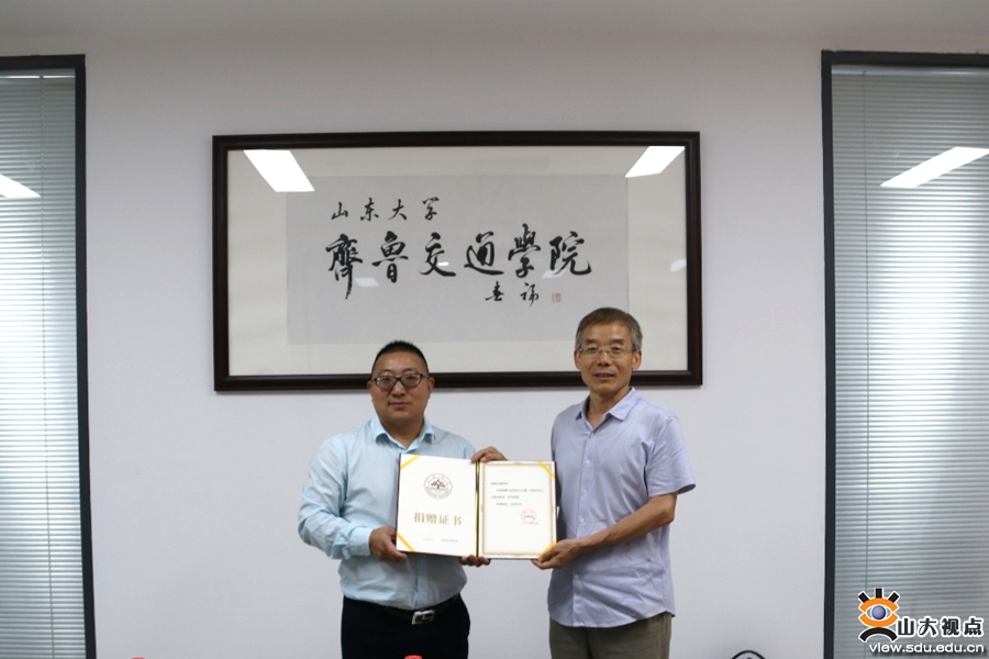 [本站讯]7月12日,齐鲁交通学院举行周清华校友捐赠仪式,招商银行股份有限公司济南舜耕支行行长、2000级交通工程系校友周清华先生向学院教育发展基金捐赠现金1万元。学院党委副书记孙玉玲,学院办公室及交通工程系、城市地下空间系相关负责人参加仪式。