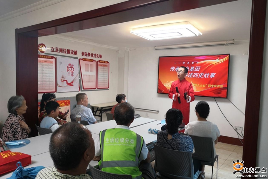党史学习,革命追忆,红色血脉薪火传。以建党百年为契机,学院学子积极响应时代号召,走出校园、走向社会,进一步学习“新四史”等红色理论知识,展开了形式多样、内容充实的党史学习教育,汲取奋进力量。七月中旬起,“声入人心”社会实践宣讲队分别面向济南市纬一路社区、济南市历下区市场监督管理所和章丘区第四中学开展四史宣讲活动;“E心向党”社会实践队赴济南市市中区七东社区开展“党史知识知多少”主题党史竞答宣传活动,并以红歌合唱和参观济南烈士陵园等多种形式缅怀革命先烈,传承红色精神;“闪闪红星”社会实践队赴潍坊诸城王尽美故居开展线下调研,追寻红色历史。各团队深入群众,创新形式,展现了新时代山大青年的青春风貌与担当。