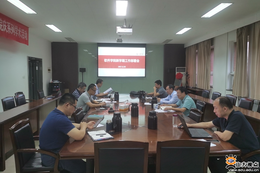 [本站讯]近日,软件学院召开会议传达贯彻学校2021年秋季学期工作会议和校庆工作推进会议精神,部署新学期工作。学院党委书记仇道滨主持会议,学院院长崔立真和领导班子全体成员参加会议。