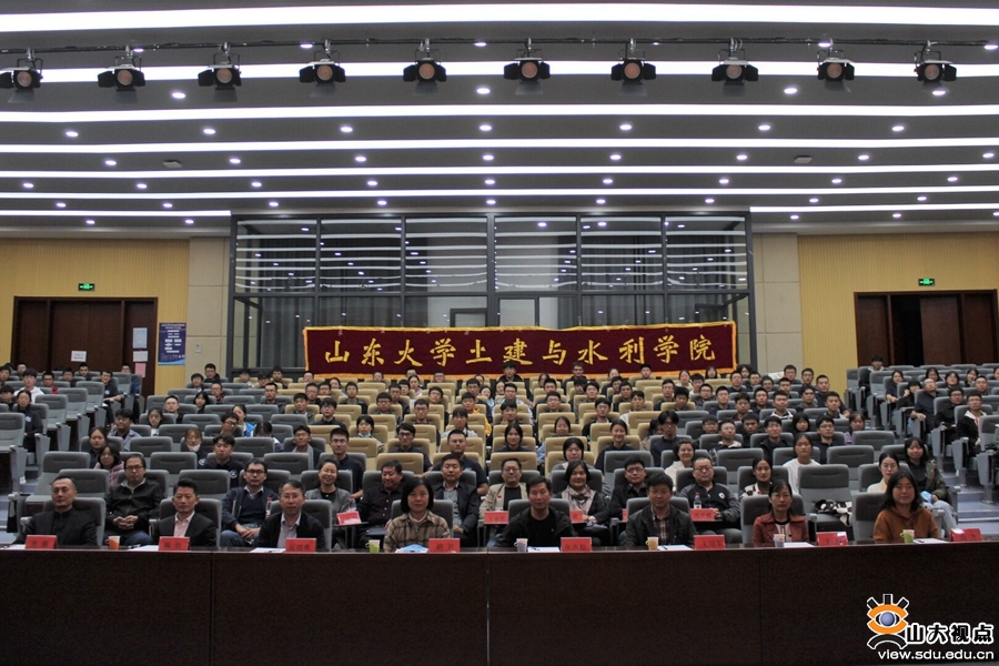 教师代表王彦明以山大校友的身份,与同学们分享了自己的求学经历和教学过程中取得的成绩。他为同学们介绍了“兴趣、苦难和爱”三位人生“导师”,期待同学们在导师的引领下发现学习生活的真谛。他还号召同学们要携手奋斗、强校兴国,成为一个心中有梦、眼里有光的新时代青年。新生代表孔婧以山大人的视角对自己提出要求并与同学们共勉。对大学生活满怀期待且充满信心的孔婧鼓励同学们做更好的“土建人”。