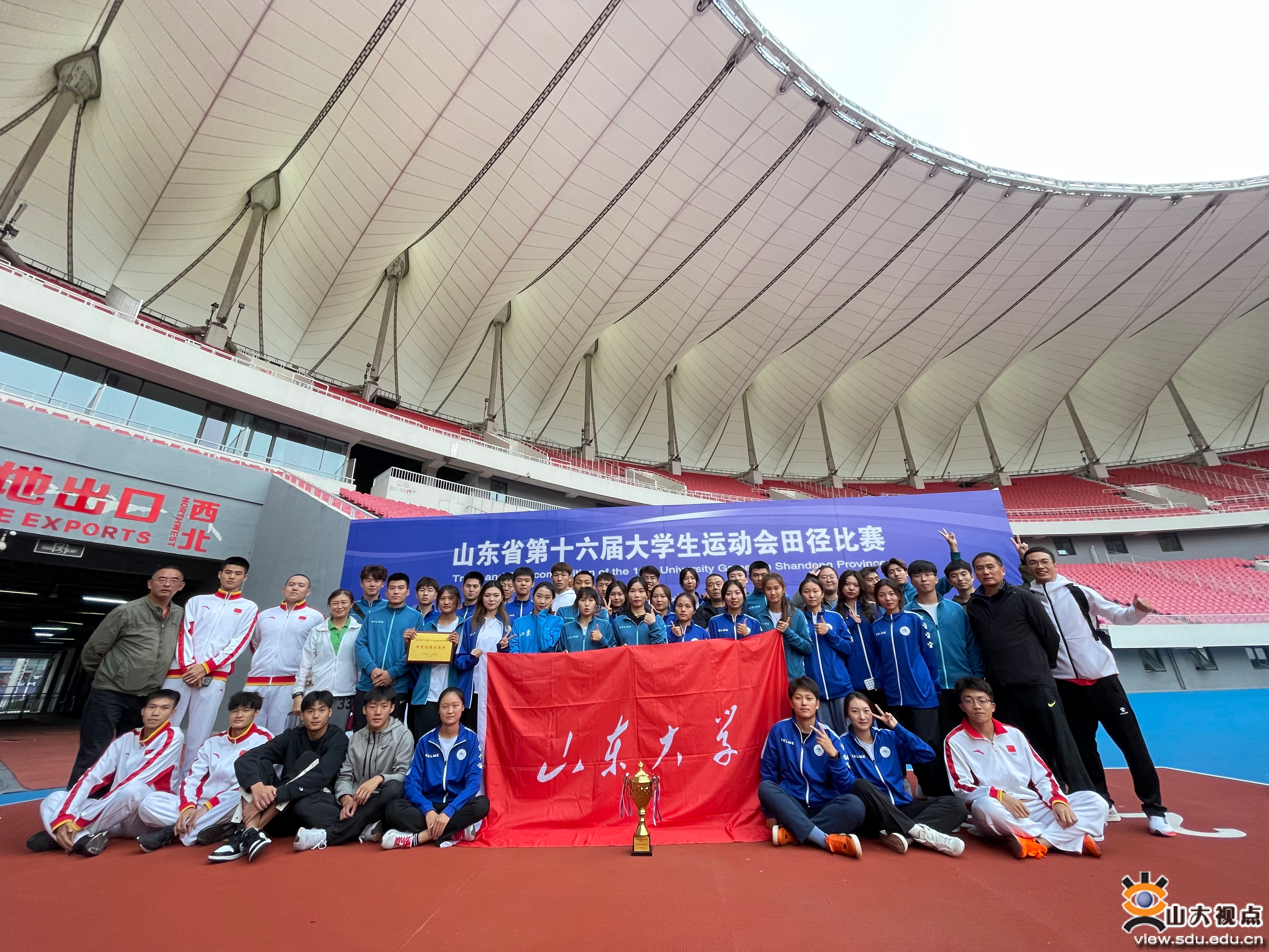 [本站讯]10月8日至10月14日,山东省第十六届大学生运动会田径比赛在山东青岛举行。山东大学高水平田径队派出4名教练员、40名高水平运动员参加了本届赛事的丙组比赛。在比赛中,山大高水平田径队稳定发挥、频频突破,共斩获18枚金牌、13枚银牌、6枚铜牌,位列金牌榜第一名、奖牌榜第一名,以绝对优势获得团体总分第一名。鲁东大学、山东理工大学、曲阜师范大学、山东农业大学、中国海洋大学、烟台大学、青岛大学分获第二至第八名。同时,由3名教练员、9名普通生运动员组成的山东大学普通生田径队参加了本届赛事的甲组比赛,共斩获2枚金牌、2枚银牌、1枚铜牌。
