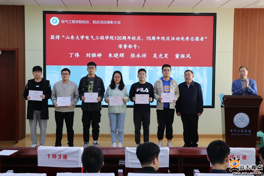 [本站讯]为表彰在百廿校庆和电气工程学院75周年院庆中表现突出的组织者和志愿者,同时激励同学们积极投身于志愿服务事业,10月22日,电气学院于电力楼召开表彰大会,学院党委书记刘相宜、党委副书记宋思利出席表彰仪式,表彰大会由研究生办公室主任宋济平主持。