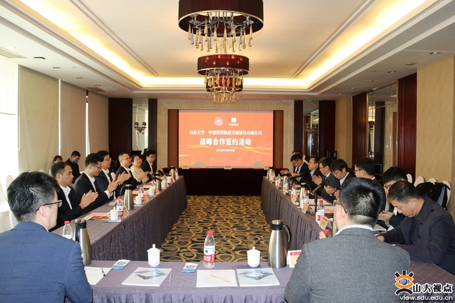 [本站讯]10月28日,山东大学与中建铁投轨道交通建设有限公司战略合作签约活动在山东大学举行。中建铁投轨道交通建设有限公司董事长、党委书记仲崇涛,山东大学副校长吴臻出席活动并致辞。