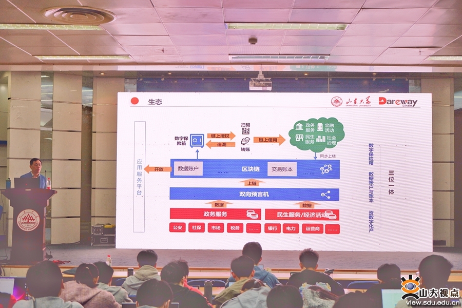 活动第5天,中国工程物理研究院十二所的研究员、副主任陶以政教授通过题为“领域场景驱动的平台化软件研发方法”的专题讲座,介绍了中国工程物理研究院十二所的情况;华为苏州研究院人力资源副所长史鹏带来了报告“做好你的职业规划”,为同学们介绍了关于行业发展的相关信息;福建博思软件股份有限公司人力资源部总监黄瑛发表题为“数字化助力政府创新城市治理新模式,助力产业转型升级”的报告,讲解了公司的发展历程,阐述了企业聚焦的三大业务领域:政府智慧财政财务、电子采购、智慧城市+数字乡村;山大地纬软件股份有限公司董事长李庆忠带来了题为“区块链——可信数字社会的基石”的报告,向学生介绍了区块链的相关知识,以及山大地纬的产学研相结合的模式。