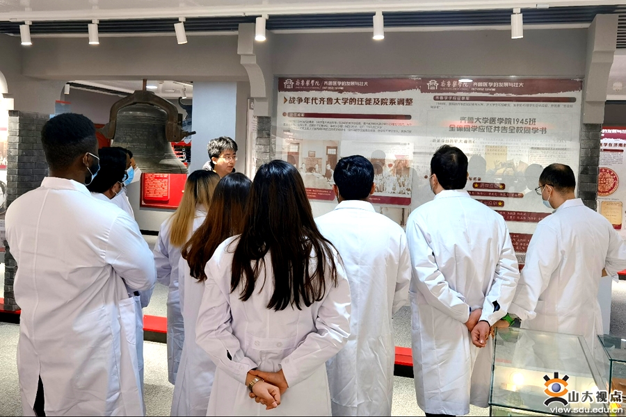 会后,王立祥向国际研究生新生赠予临床医学院国际研究生文创纪念品,学院相关负责教师带领新生参观齐鲁医学百年院史馆。