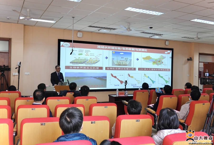 山东大学环境科学与工程学院院长景传勇汇报了山大环境学科在师资队伍、科学研究、人才培养等方面的进展,分析了学科发展现状,并提出了目前所面临的困难;袁宪正、胡新明、刘春光三位青年教师分别汇报了最新科研成果。