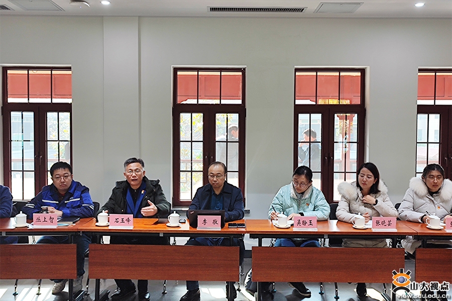 参观学习后召开了座谈会,袁慎庆主持座谈会。石玉峰在发言中讲到,这次活动让我们回顾了前辈党员们英勇的斗争历史,使我们更加理解党为中国人民谋幸福的初心和实现中华民族伟大复兴的使命,非常有现实意义。山东大学金融研究院响应习近平总书记的号召,以彭实戈院士为首的科研团队,紧抓基础理论创新,在倒向随机微分方程、非线性期望等领域实现了开创性的突破,走在世界的前列。在强化基础研究的同时,山东大学也注重加强应用基础研究,并创立了科技部挂牌的山东国家应用数学中心、教育部挂牌的非线性期望前沿科学中心等国家级平台。中心承担了一系列重点领域前沿应用课题,在通讯、医学、智能制造、海洋、金融等领域积极推进数学与产业的结合,推进科学技术成果转化,听从习近平总书记的号召,推动我国科技自立自强,解决产业痛点和卡脖子问题,把论文写在祖国大地上。金融研究院党支部书记吴盼玉在发言中说到,作为教育工作者,在教学中应该注重党史的输入,这次活动就是很好的教育,让我们党员近距离感受到前辈党员的革命斗争精神,增强了作为共产党员的自豪感。下一步,金融研究员党支部将积极引导、鼓励创新,推进产学研结合,加快科技成果转化和科技经济融合发展。