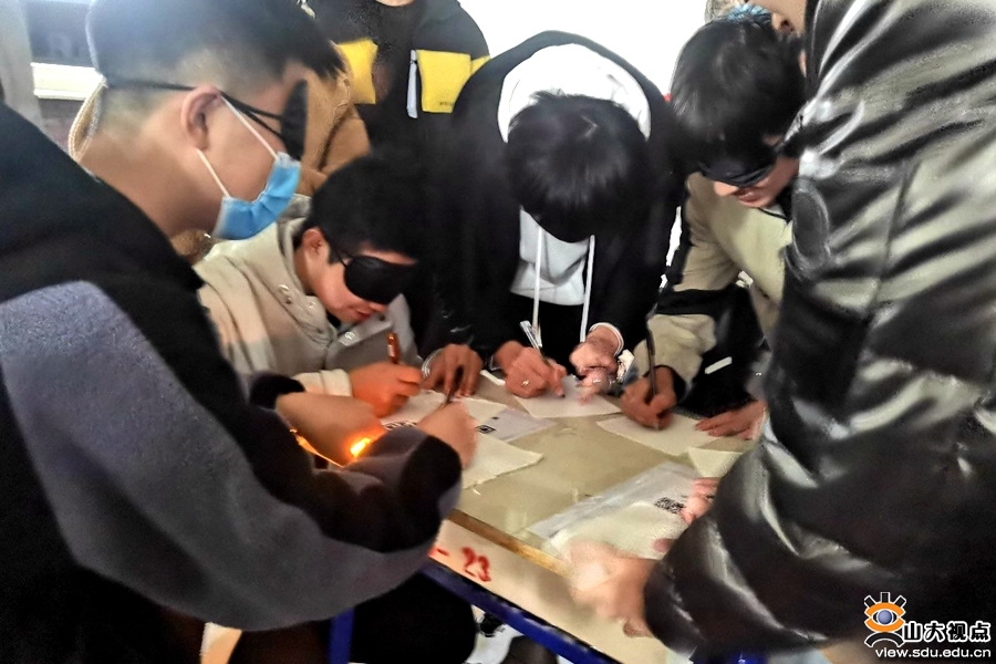 活动伊始,学院青年志愿者协会的成员组织在场学生扫码进行关艾知识竞答。在竞答结束后,宣布了竞答环节的前六名,并引导他们参与蒙眼作画的小游戏。作画的主题是“龙”。六位竞答胜出者的画作可谓是千奇百怪、妙趣横生,给在场学生带来了许多欢乐。
