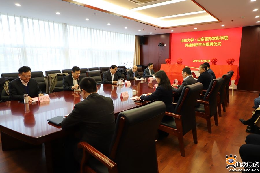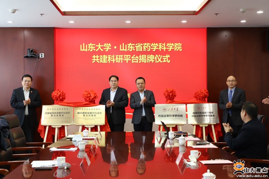 [本站讯]12月3日,山东大学与山东省药学科学院共建科研平台揭牌仪式在山东省药学科学院举行。山东省药学科学院党委书记、理事长、院长张岱州,山东大学齐鲁医学院副院长刘奇迹、药学院党委书记王秋生、药品监管科学研究院执行院长王凤山等出席活动。
