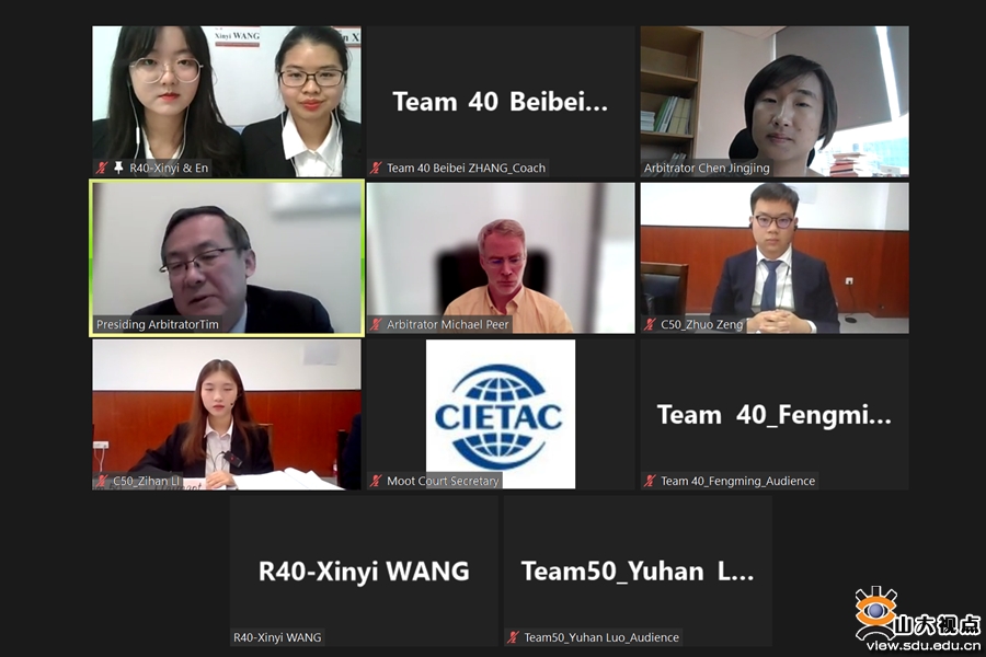 山东大学代表队自9月中旬组建后,队员们便积极投入比赛准备,学习国际商事仲裁的相关知识,阅读往届经验总结。10月9日,国际模拟仲裁辩论赛官网公布赛题(Problem)后,队员们立即投入到法律文书写作过程中,仔细研究AIACRules、CISG、New York Convention、UNIDROIT Principles等法律条文以及相关文献和案例,分成实体、程序小组完成了近百页的仲裁申请书(Memorandum for Claimant)和仲裁答辩书(Memorandum for Respondent)的撰写。为提前进入比赛状态,上场队员投入大量时间进行英语口语训练,多次模拟答辩,进步迅速;其他队员则尽职尽责做好后勤保障工作,针对线上比赛这一崭新的形式,全方位保证比赛顺利进行,整支队伍全心投入,配合默契。法学院对此次比赛特别重视,在技术设备、场地等各方面给予了充分的支持,山东大学在“贸仲杯”赛事上已经形成了代代相传的良好传统,往届队员全力帮助,多次传授经验并提供指导。